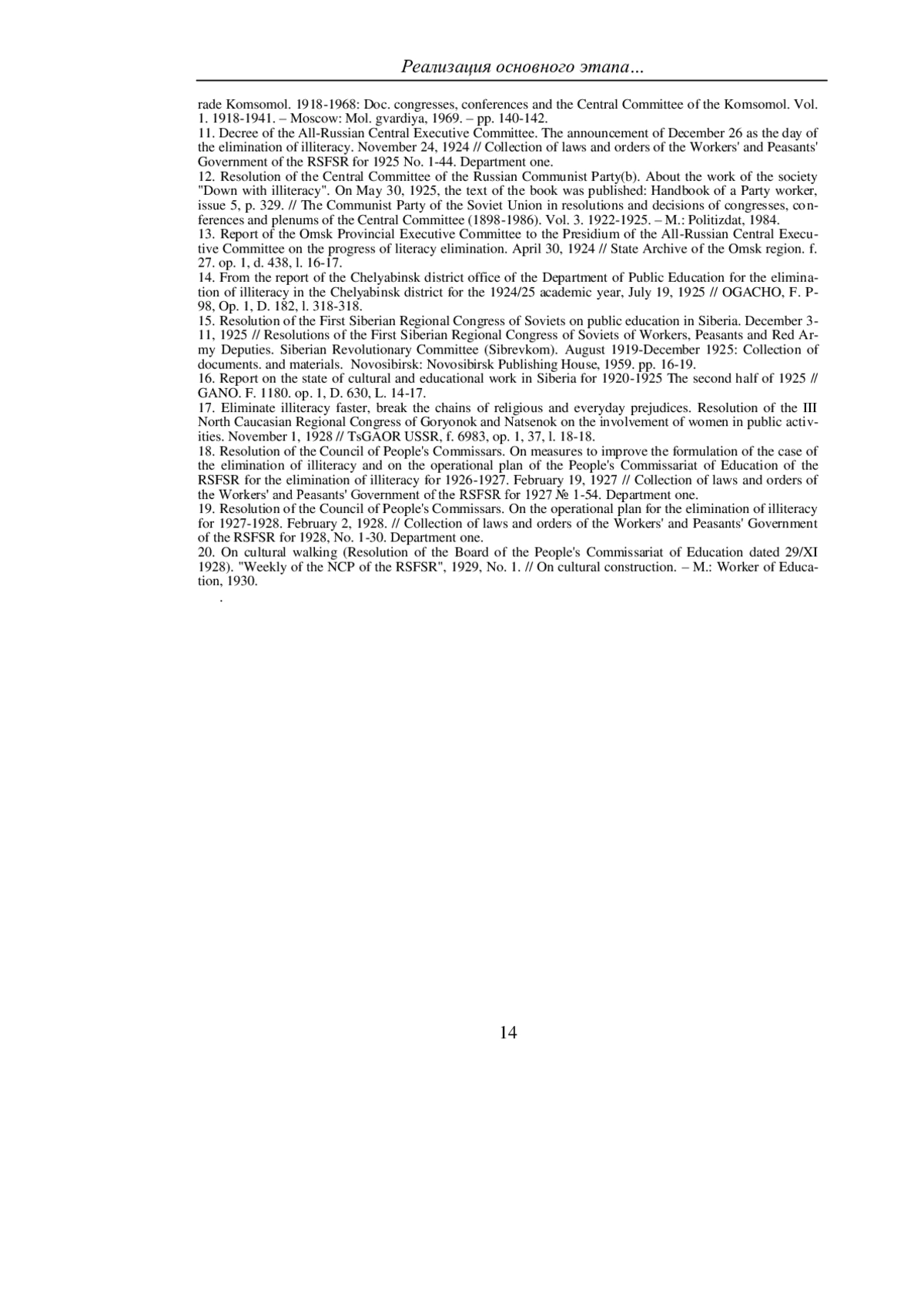 16. Доклад о состоянии культурно-просветительной работы в Сибири за 1920-1925 г. Вторая половина 1925 г. // ГАНО. Ф. 1180. оп. 1, д. 630, Л. 14-17. - Текст: непосредственный.