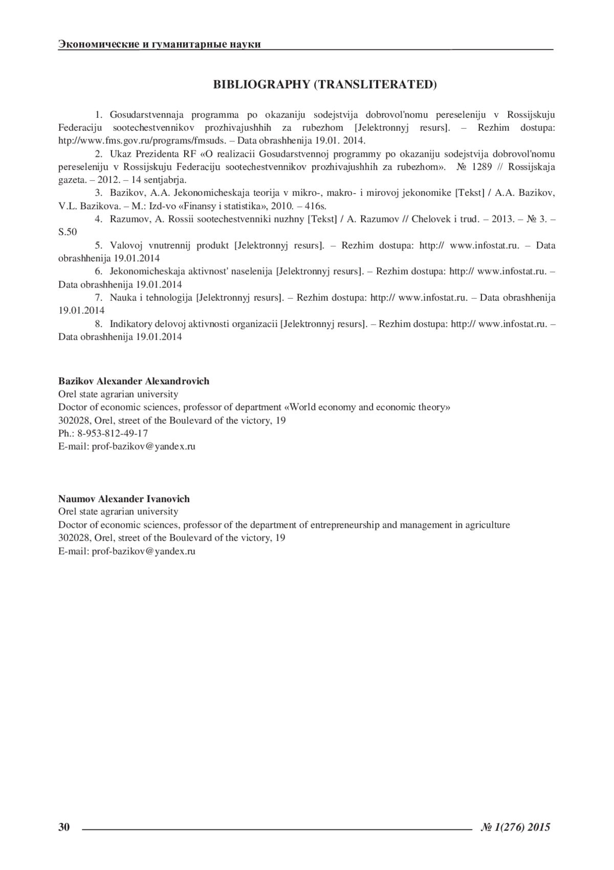 4. Разумов, А. России соотечественники нужны [Текст] / А. Разумов // Человек и труд. - 2013. - № 3. - С.50.