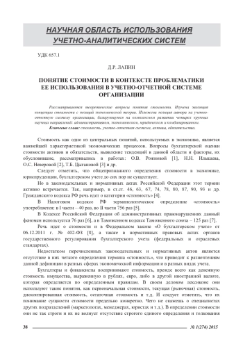 Стоимость как одно из центральных понятий, используемых в экономике, является важнейшей характеристикой экономических процессов. Вопросы бухгалтерской оценки стоимости активов и обязательств, выявление тенденций в данной области и факторы, их обусловившие, рассматривались в работах: О. В. Рожновой [1], Н. Н. Илышева, О. С. Неверовой [2], Т. Б. Цыгановой [3] и др