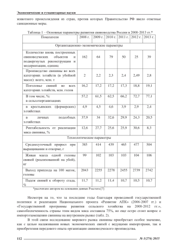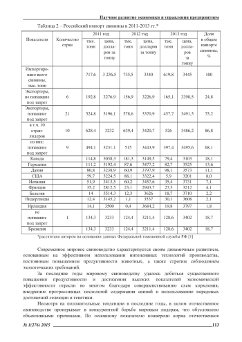 Свиноводческая продукция занимает значительный сегмент продовольственного рынка России. Свинина является основным сырьем для мясоперерабатывающей промышленности, на долю которой в производстве колбасных изделий приходится до 70%. Кроме того, наряду с птицей свинина – наиболее доступный вид мяса для населения