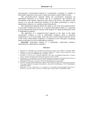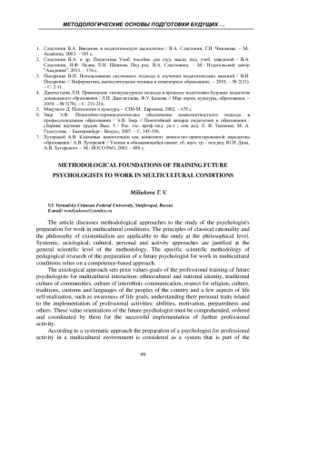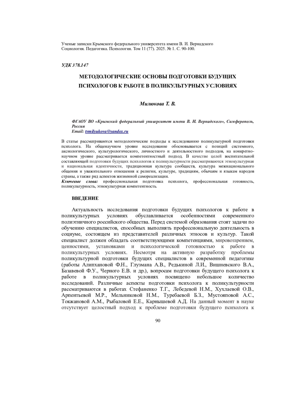 Актуальность исследования подготовки будущих психологов к работе в поликультурных условиях обуславливается особенностями современного полиэтничного российского общества. Перед системой образования стоят задачи по обучению специалистов, способных выполнять профессиональную деятельность.