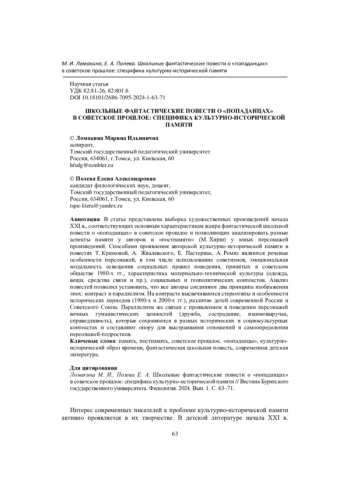 В статье представлена выборка художественных произведений начала ХХI в., соответствующих основным характеристикам жанра фантастической школьной повести о «попаданцах» в советское прошлое и позволяющих анализировать разные аспекты памяти у авторов и «постпамяти» (М. Хирш) у юных персонажей произведений. Способами проявления авторской культурно-исторической памяти в повестях Т. Крюковой, А. Жвалевского, Е. Пастернак, А. Ремиз являются речевые особенности персонажей, в том числе использование советизмов, эмоциональная модальность освещения социальных правил поведения, принятых в советском обществе 1980-х гг., характеристика материально-технической культуры (одежда, вещи, средства связи и пр.), социальных и геополитических контекстов. Анализ повестей позволил установить, что все авторы соединяют два принципа изображения эпох: контраст и параллелизм. На контрасте высвечиваются стереотипы и особенности исторических периодов (1980-х и 2000-х гг.), различие детей современной России и Советского Союза. Параллелизм же связан с проявлением в поведении персонажей вечных гуманистических ценностей (дружба, сострадание, взаимовыручка, справедливость), которые сохраняются в разных исторических и социокультурных контекстах и составляют опору для выстраивания отношений и самоопределения персонажей-подростков.