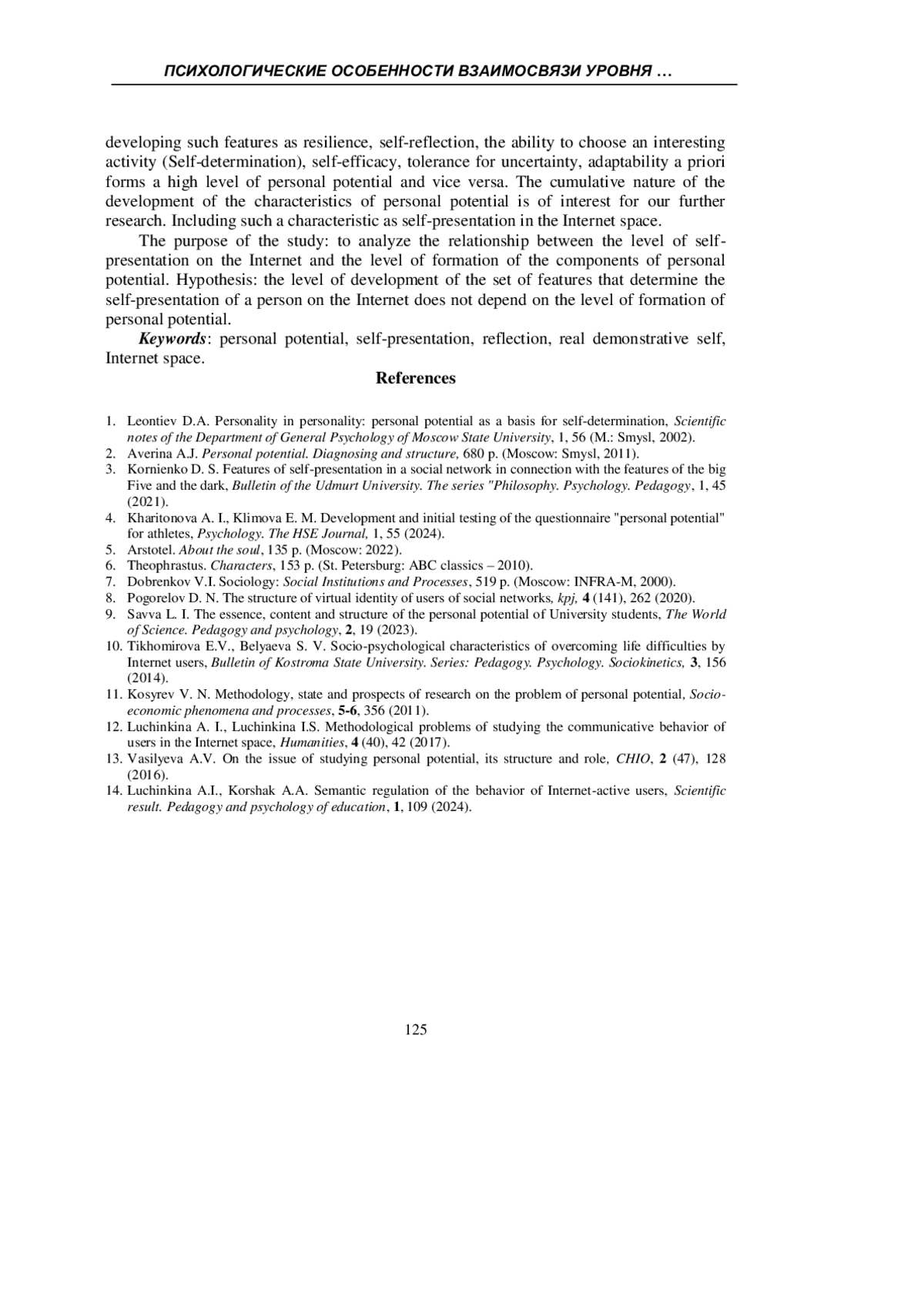 9. Савва Л.И. Сущность, содержание и структура личностного потенциала студентов университета / Л.И. Савва, Д.А. Хабибулин, В. В. Егоров // Мир науки. Педагогика и психология. - 2023. - №2. - С. 19-30.