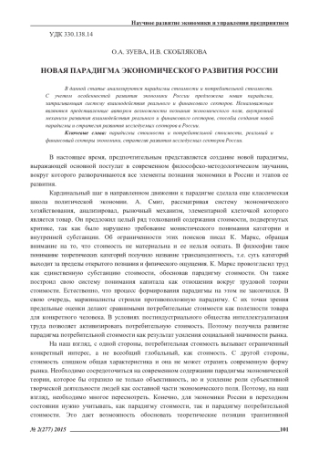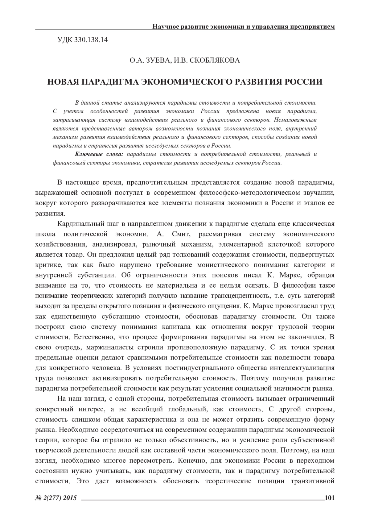 ЗУЕВА О. А., СКОБЛЯКОВА И. В. НОВАЯ ПАРАДИГМА ЭКОНОМИЧЕСКОГО РАЗВИТИЯ РОССИИ // ЭКОНОМИЧЕСКИЕ И ГУМАНИТАРНЫЕ НАУКИ. 2015. № 2 (277)