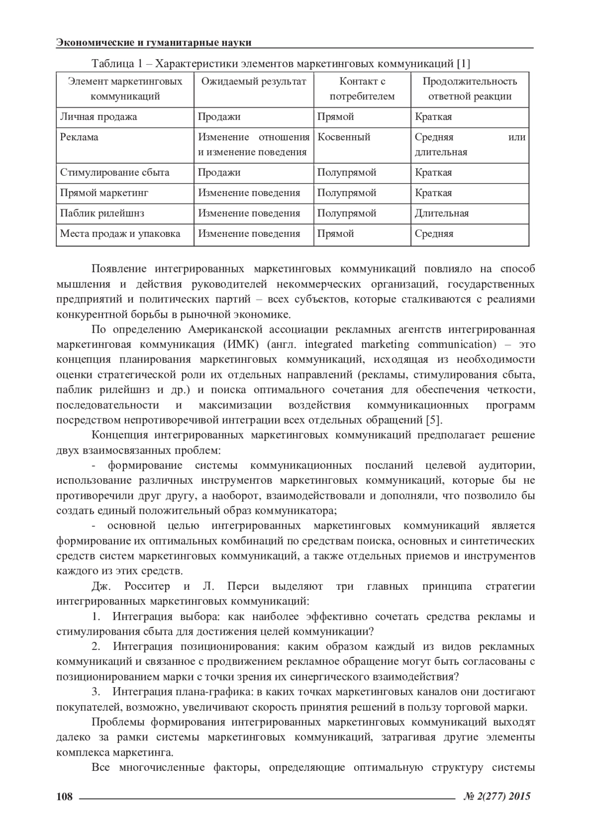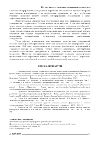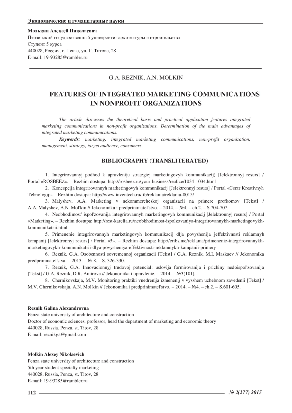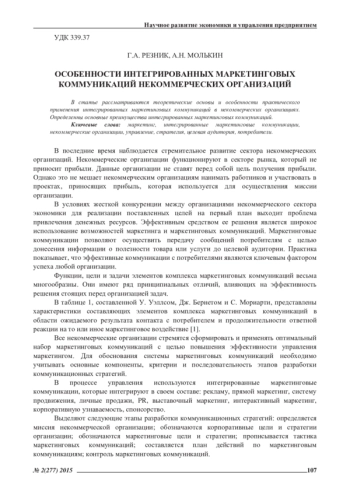 РЕЗНИК Г. А., МОЛЬКИН А. Н. ОСОБЕННОСТИ ИНТЕГРИРОВАННЫХ МАРКЕТИНГОВЫХ КОММУНИКАЦИЙ НЕКОММЕРЧЕСКИХ ОРГАНИЗАЦИЙ // ЭКОНОМИЧЕСКИЕ И ГУМАНИТАРНЫЕ НАУКИ. 2015. № 2 (277)