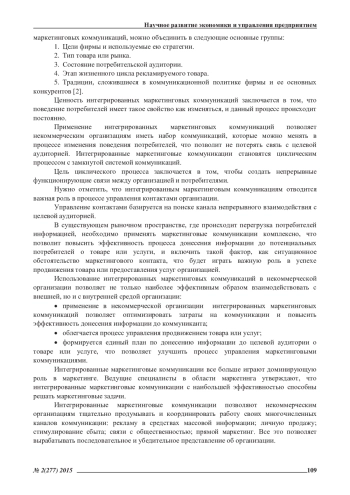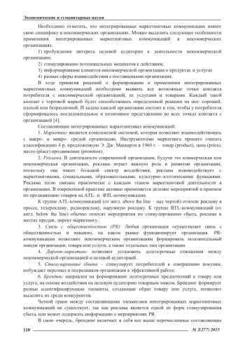 Статья: ОСОБЕННОСТИ ИНТЕГРИРОВАННЫХ МАРКЕТИНГОВЫХ КОММУНИКАЦИЙ НЕКОММЕРЧЕСКИХ ОРГАНИЗАЦИЙ (2015)