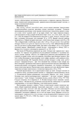 4. Николаева Н. Н. Отрицательные персонажи в героическом эпосе бурят // Филологические науки. Вопросы теории и практики. Тамбов: Грамота, 2014. № 4(34): в 3 ч. Ч. 2. C. 145-148. Текст: непосредственный. EDN: RWYXJT