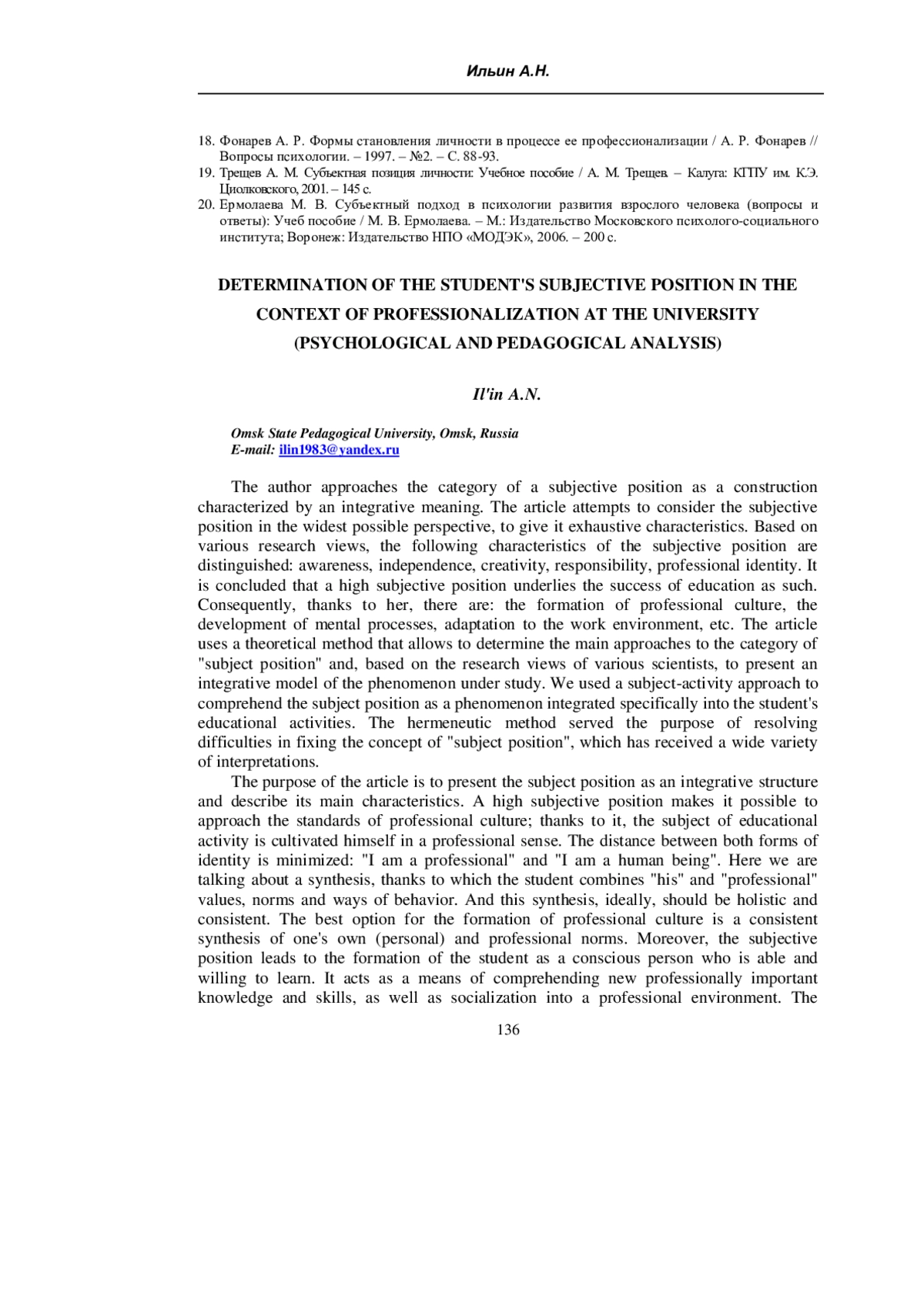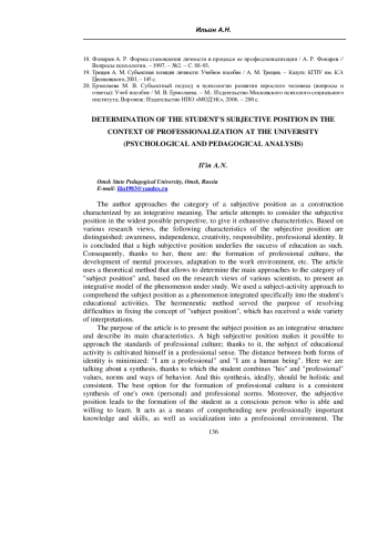 19. Трещев А. М. Субъектная позиция личности: Учебное пособие / А. М. Трещев. - Калуга: КГПУ им. К.Э. Циолковского, 2001. - 145 с. EDN: ECUSOE