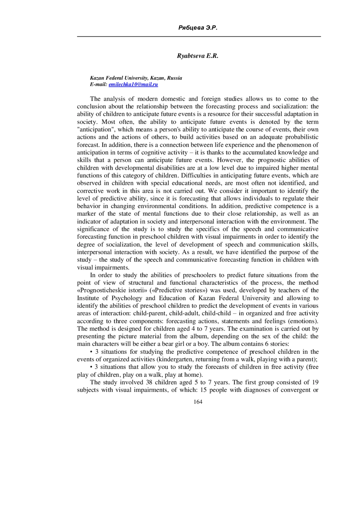 11. Ахметзянова А.И. Особенности социализации детей дошкольного возраста с нарушениями зрения / А.И. Ахметзянова, М.В. Гибадуллина // Психология психических состояний: сборник материалов XIV международной научно-практической конференции для студентов, магистрантов, аспирантов, молодых ученых и преподавателей вузов. - Казань: Издательство Казанского университета, 2020. - С. 46-49. EDN: JBJMXA