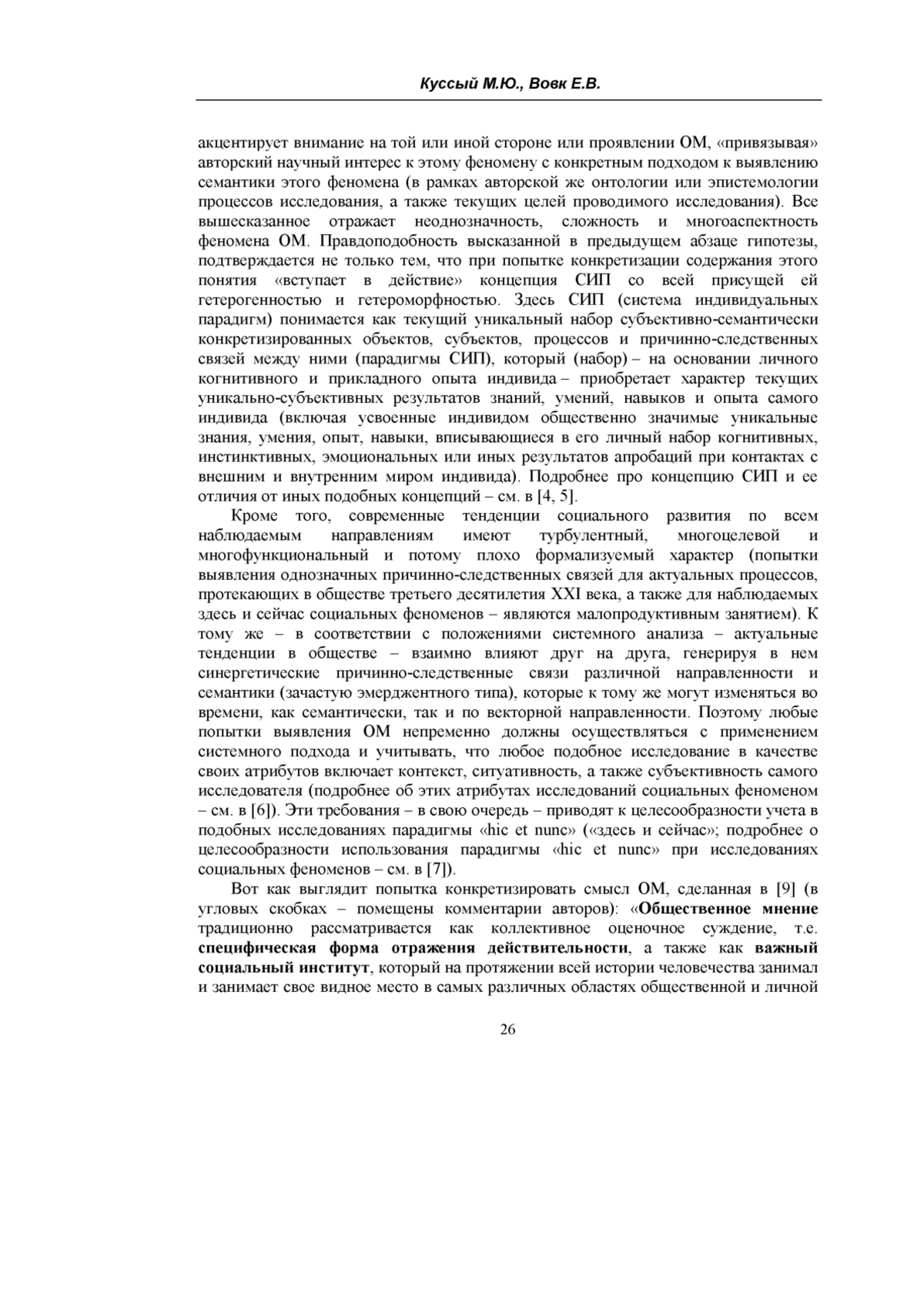 7. Куссый М.Ю. Некоторые соображения о целесообразности применения парадигмы “здесь и сейчас” в исследованиях социальных и социально-экономических феноменов / М.Ю. Куссый // Анализ, моделирование, управление, развитие социально-экономических систем: сборник научных трудов ХVIII Международной школы-симпозиума АМУР-2024 (Симферополь-Судак, 14-27 сентября 2024) / ред. совет: А.В. Сигал (предс.) и др. - Симферополь: ИП Корниенко А.А., 2024. - С. 198-201. EDN: KPVMSJ