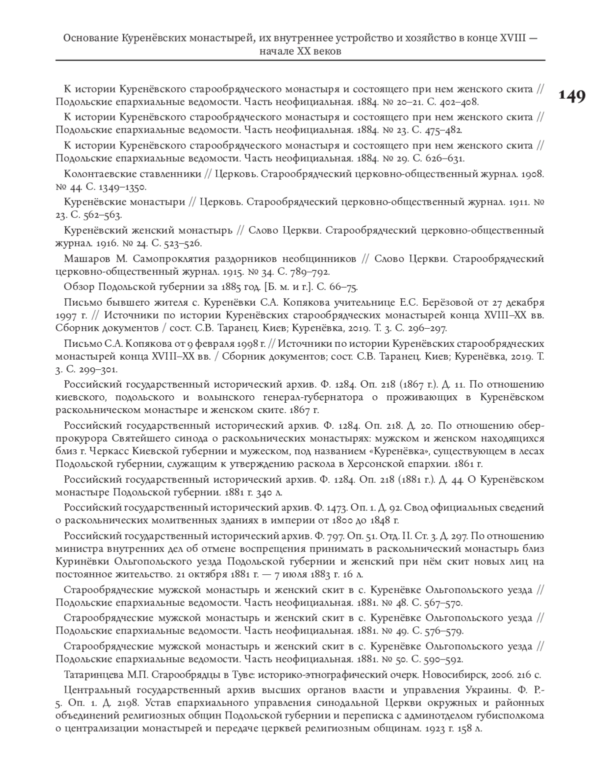 13. К истории Куренёвского старообрядческого монастыря и состоящего при нем женского скита // Подольские епархиальные ведомости. Часть неофициальная. 1884. № 23. С. 475-482.