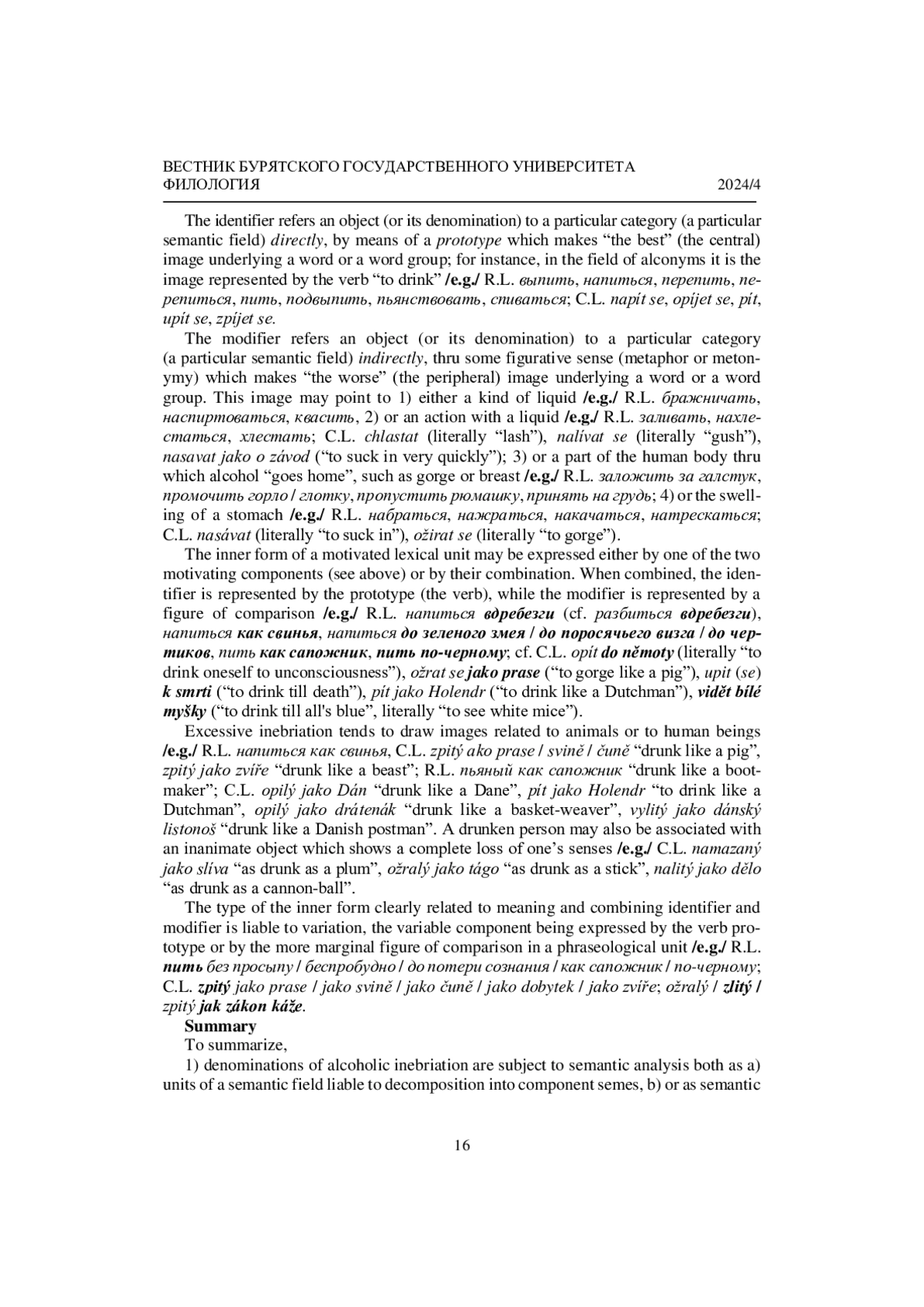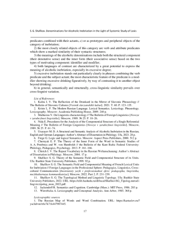 1. Kalita I. V. The Reflection of the Drunkard in the Mirror of Slavonic Phraseology // The Bulletin of Slavonic Cultures [Vestnikslavyanskikh kultur], 2021. Т. 60. P. 123-135.