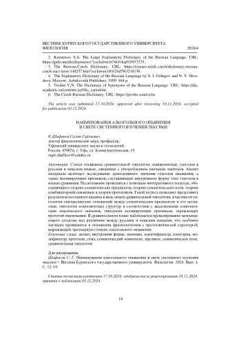 5. Urazayev M. D. A Structural and Semantic Analysis of Alcoholic Inebriation in the Russian, English and German Languages: Author’s Abstract of Dissertation in Philology. Ufa, 2023. 28 p.
