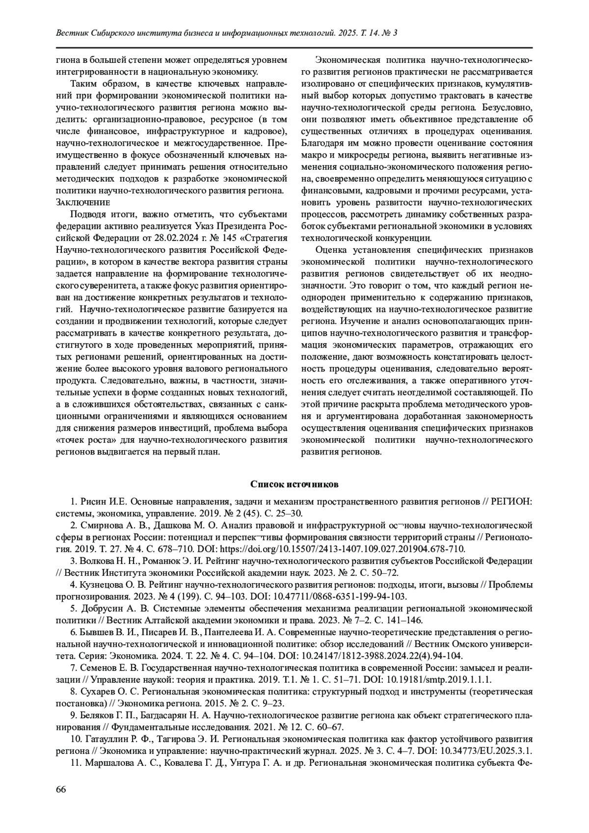 6. Бывшев В. И., Писарев И. В., Пантелеева И. А. Современные научно-теоретические представления о региональной научно-технологической и инновационной политике: обзор исследований // Вестник Омского университета. Серия: Экономика. 2024. Т. 22. № 4. С. 94-104. https://doi.org/10.24147/1812-3988.2024.22(4).94-104.