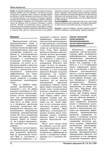 Постановка проблемы. Одна из актуальных проблем промышленной автоматизации заключается в том, что работа немногих имеющихся на Российском рынке систем прогнозируемого обслуживания, как правило, основывается на сборе и анализе данных оборудования без учета совместного воздействия внутренних и внешних факторов. В текущих экономических условиях необходим обоснованный выбор и применение новых технологий искусственного интеллекта для исследования и реализации базовых принципов потенциала негативности рассогласования, которые откроют новые горизонты для повышения эффективности и надежности промышленных автоматизированных систем прогнозируемого или предписывающего обслуживания многостадийных технологических процессов. Моделирование автоматических реакций на изменения окружающей среды и прогнозирование отказов позволит создать адаптивные системы, которые существенно снизят риски возникновения сбоев и аварий, а также будут способствовать оптимизации производственных ресурсов и снижению эксплуатационных затрат.