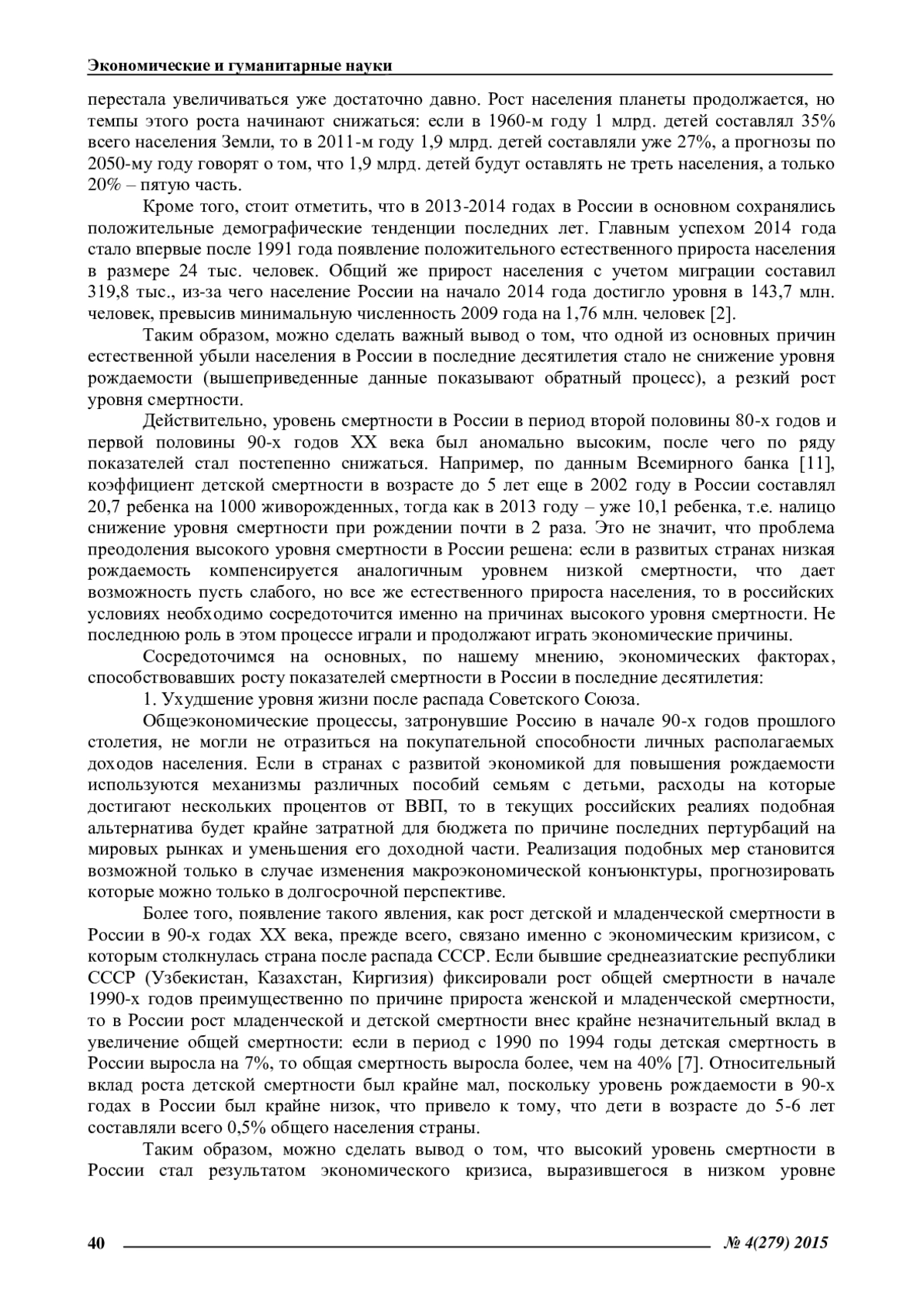 АБЕЛЕВ О. А. ДЕМОГРАФИЧЕСКИЙ "КРЕСТ": ИЛЛЮЗИЯ ИЛИ РЕАЛЬНОСТЬ? // ЭКОНОМИЧЕСКИЕ И ГУМАНИТАРНЫЕ НАУКИ. 2015. № 4 (279)