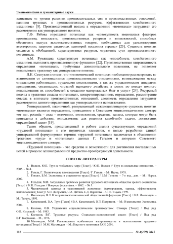 Статья: СУЩНОСТЬ ТРУДОВОГО ПОТЕНЦИАЛА КАК СОЦИАЛЬНО-ЭКОНОМИЧЕСКОЙ КАТЕГОРИИ (2015)