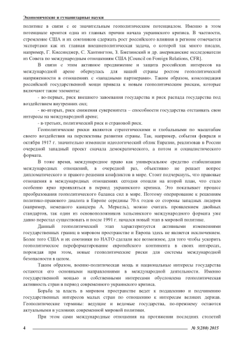 Статья: НАЦИОНАЛЬНЫЕ ИНТЕРЕСЫ РОССИИ В УСЛОВИЯХ СОВРЕМЕННЫХ ГЕОПОЛИТИЧЕСКИХ РИСКОВ (2015)