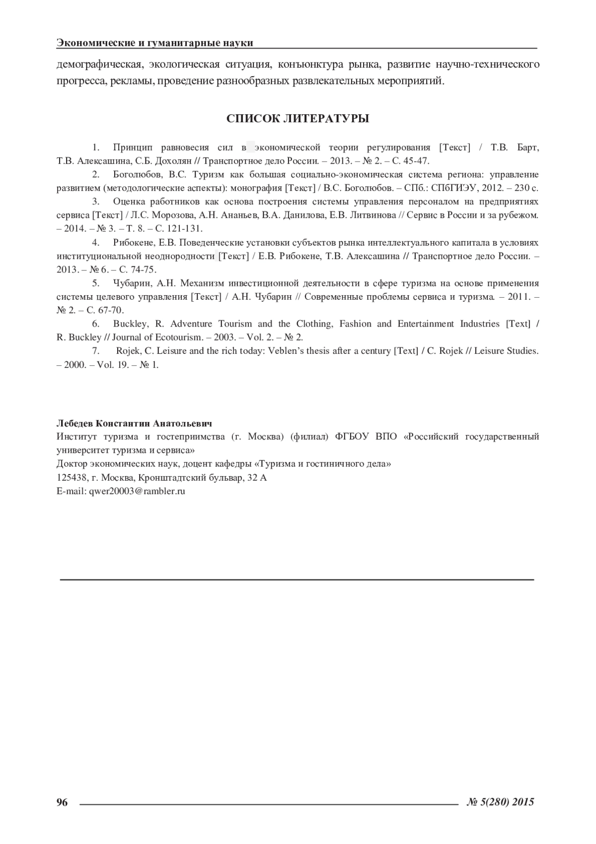 1. Принцип равновесия сил в экономической теории регулирования [Текст] / Т.В. Барт, Т.В. Алексашина, С.Б. Дохолян // Транспортное дело России. - 2013. - № 2. - С. 45-47. EDN: QYRNLD
