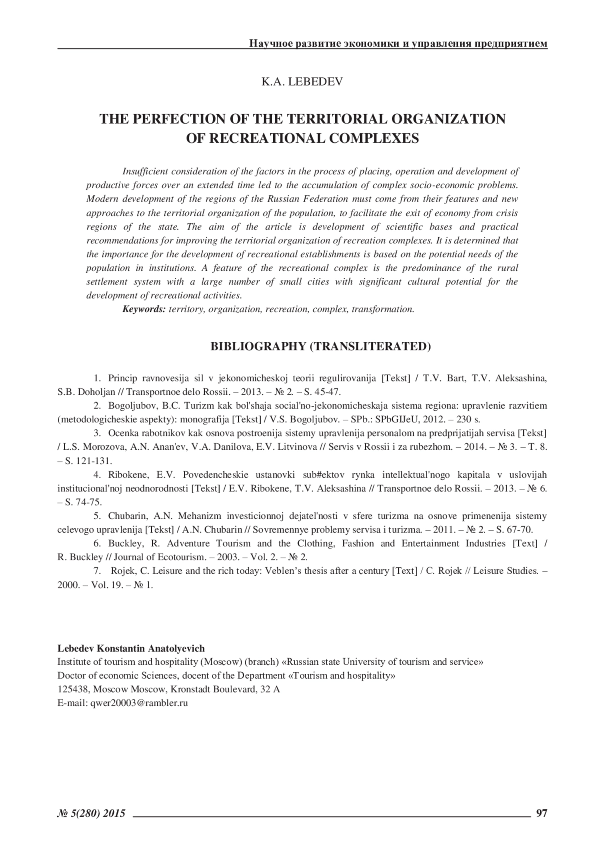 Одной из главных задач экономической трансформации Российской Федерации является эффективное использование природно-ресурсного и социально-экономического потенциала ее регионов. В этой связи особенно актуальными являются вопросы обеспечения развития рекреационной сферы как одной из рентабельных и быстроокупаемых