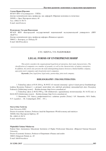1. Федеральный закон от 05.05.2014 г. № 99-ФЗ «О внесении изменений в главу 4 части первой Гражданского кодекса Российской Федерации и о признании утратившими силу отдельных положений законодательных актов Российской Федерации» [Электронный ресурс]. - Режим доступа: http://www.consultant.ru.