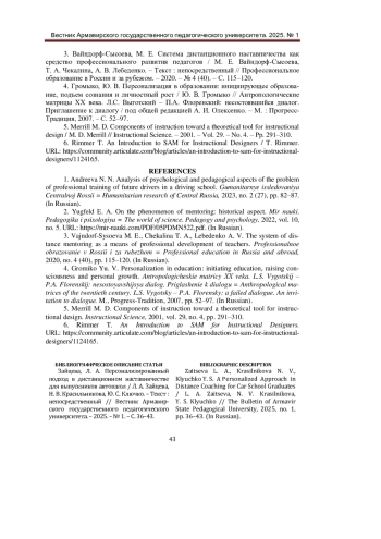5. Merrill M. D.Components of instruction toward a theoretical tool for instructional design / M. D. Merrill // Instructional Science. - 2001. - Vol. 29. - No. 4. - Pp. 291-310. EDN: ARSENR