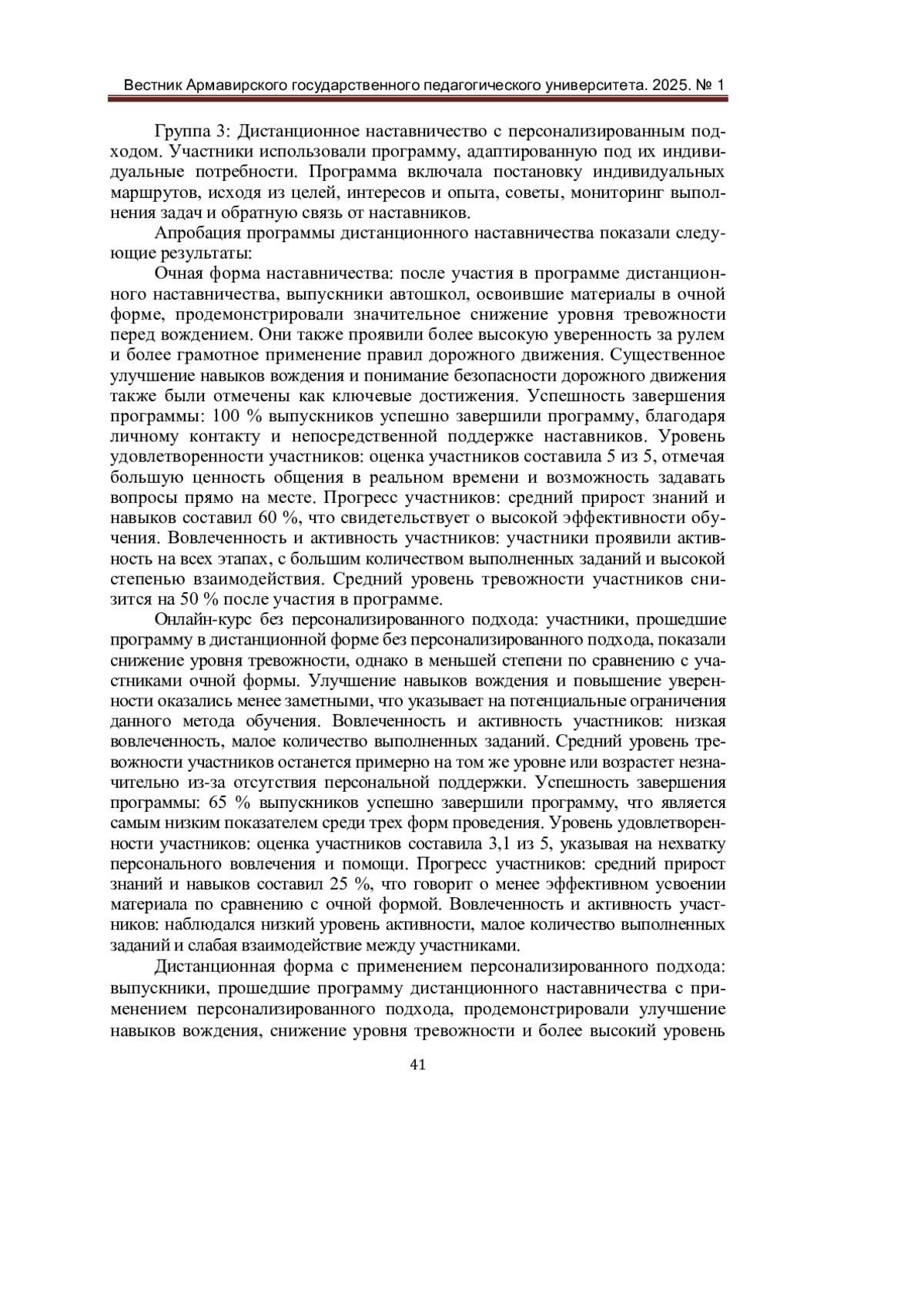 В статье отражены вопросы разработки новых инструментов и технологий дистанционного наставничества в сфере обучения вождению, а именно программы дистанционного наставничества на основе персонализированного подхода. Определена необходимость его использования для проектирования программы дистанционного наставничества на основе моделей педагогического дизайна СМАРТ и 4C/ID, обоснованы условия успешной реализации программы, представлены результаты разработки авторского содержания программы как средства оптимизации процесса наставничества при организации дистанционного формата. Разработана программа дистанционного наставничества выпускников автошкол, которая поможет поддержать выпускников автошкол, повысить уровень навыков вождения и степень готовности к самостоятельному вождению.