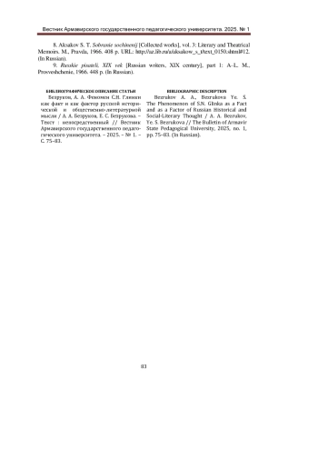 8. Аксаков, С. Т. Собрание сочинений. В 5 томах. Том 3: Литературные и театральные воспоминания / С. Т. Аксаков. - М.: Правда, 1966. - 408 с. - URL: http://az.lib.ru/a/aksakow_s_t/text_0150.shtml#12 (дата обращения: 10.03.2025). - Текст: электронный.