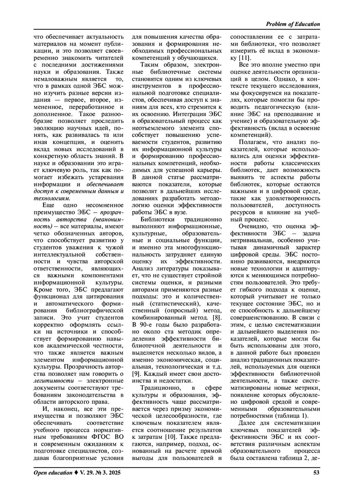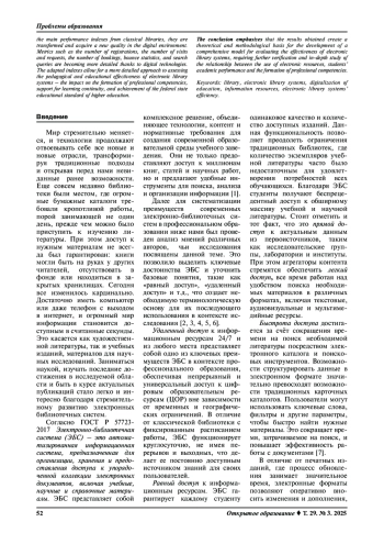 Заключение подчеркивает, что полученные результаты создают теоретико-методологическую основу для разработки комплексной модели оценки эффективности ЭБС, требующей дальнейшей верификации и углубленного изучения взаимосвязей между использованием электронных ресурсов, академической успеваемостью студентов и формированием профессиональных компетенций.