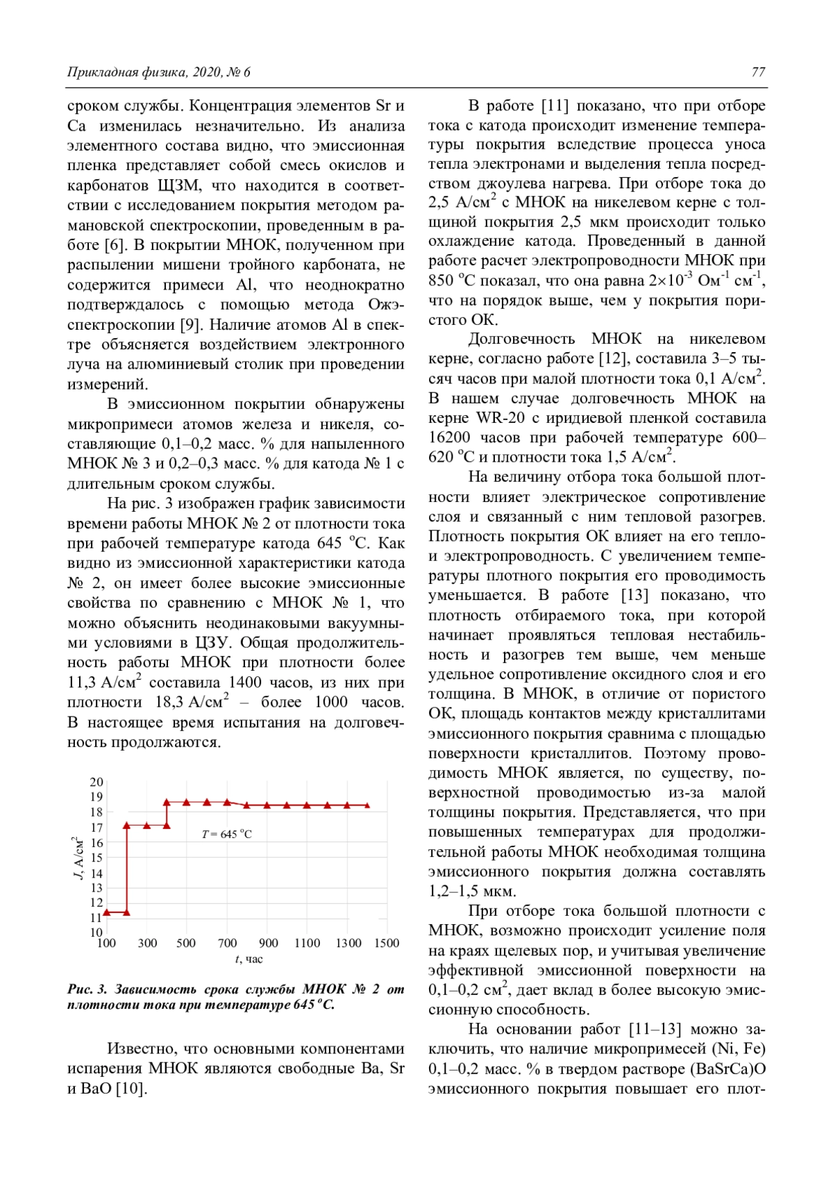4. Отбор тока c МНОК более 24 А/см2 при температуре 830–850 оC резко сократил время его работы до 200 часов из-за интенсивного испарения Ва и деградации эмиссионного покрытия.