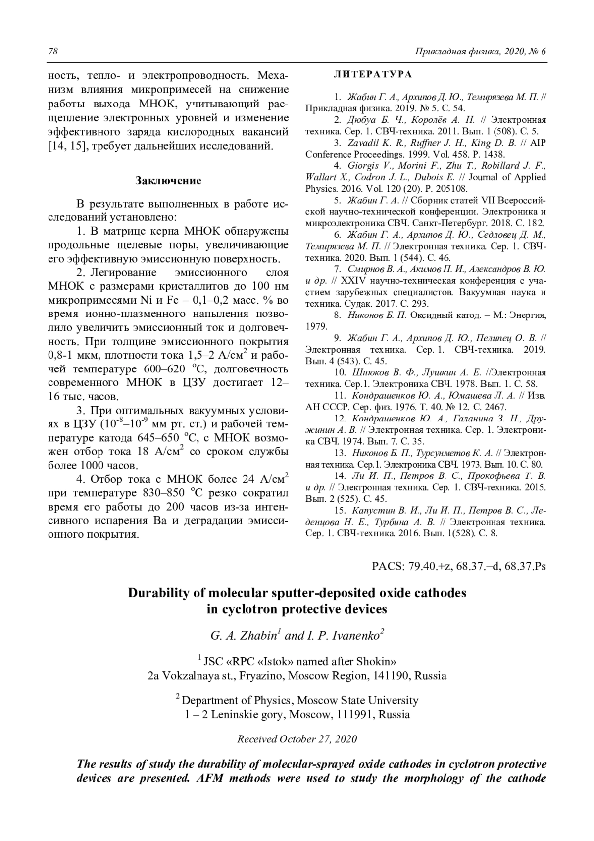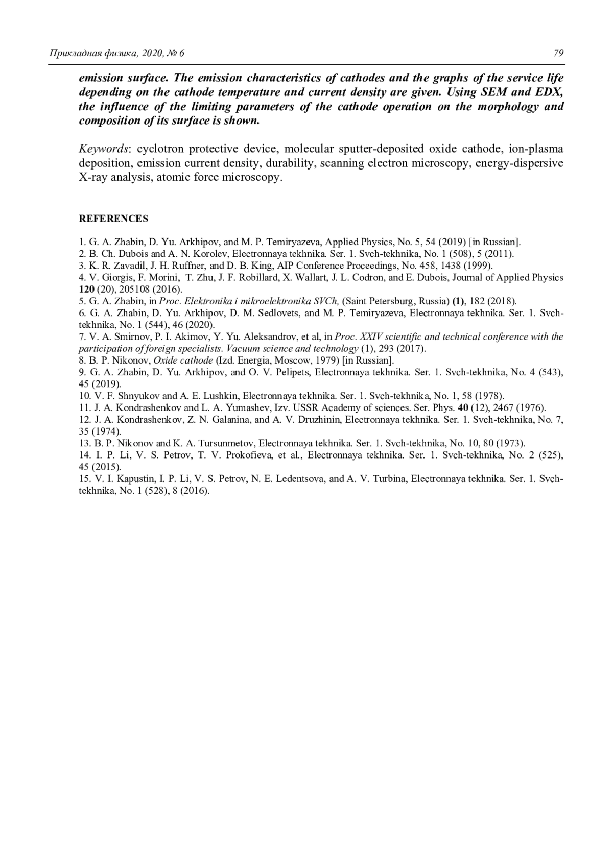 1. Жабин Г. А., Архипов Д. Ю., Темирязева М. П. // Прикладная физика. 2019. № 5. С. 54.