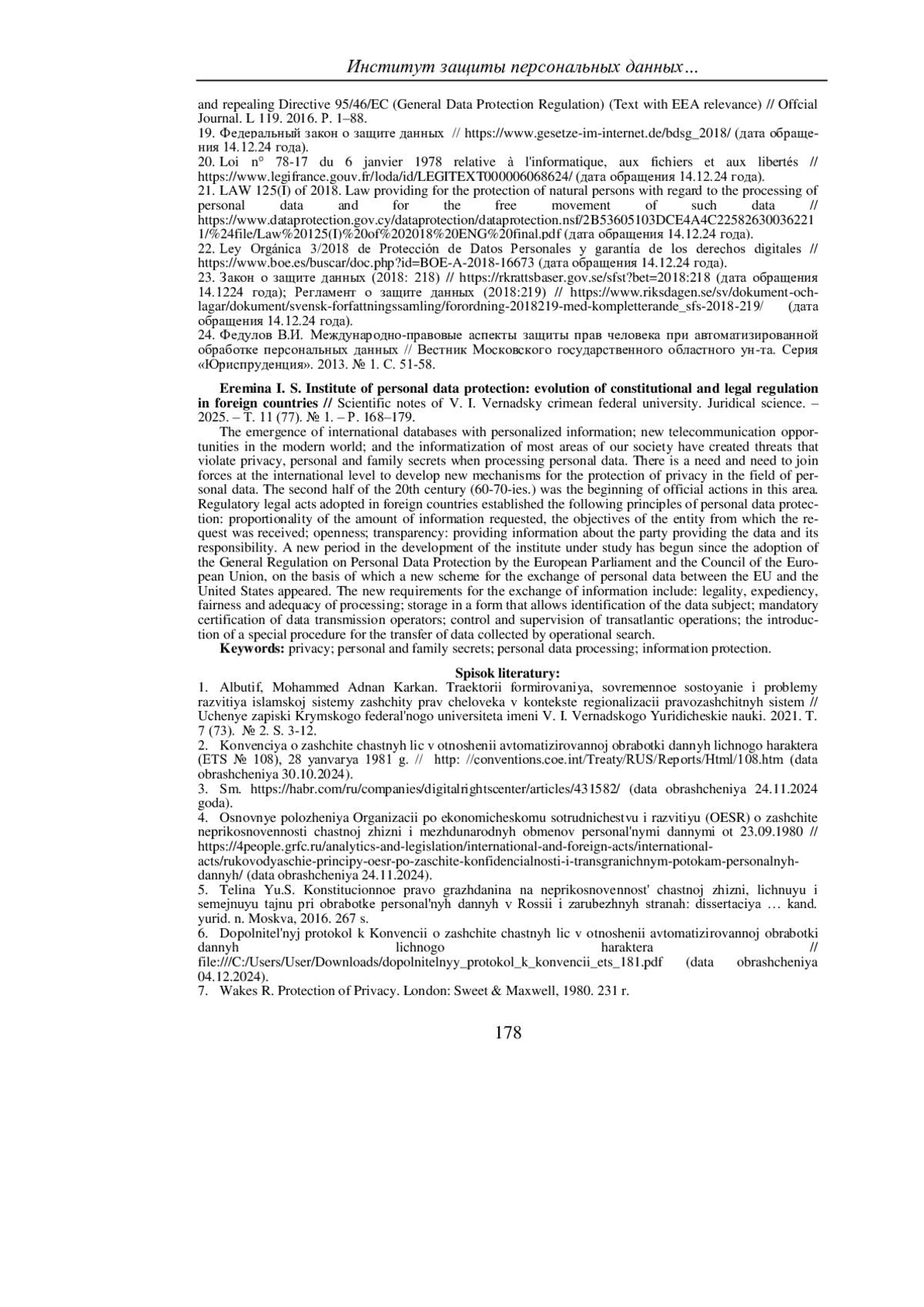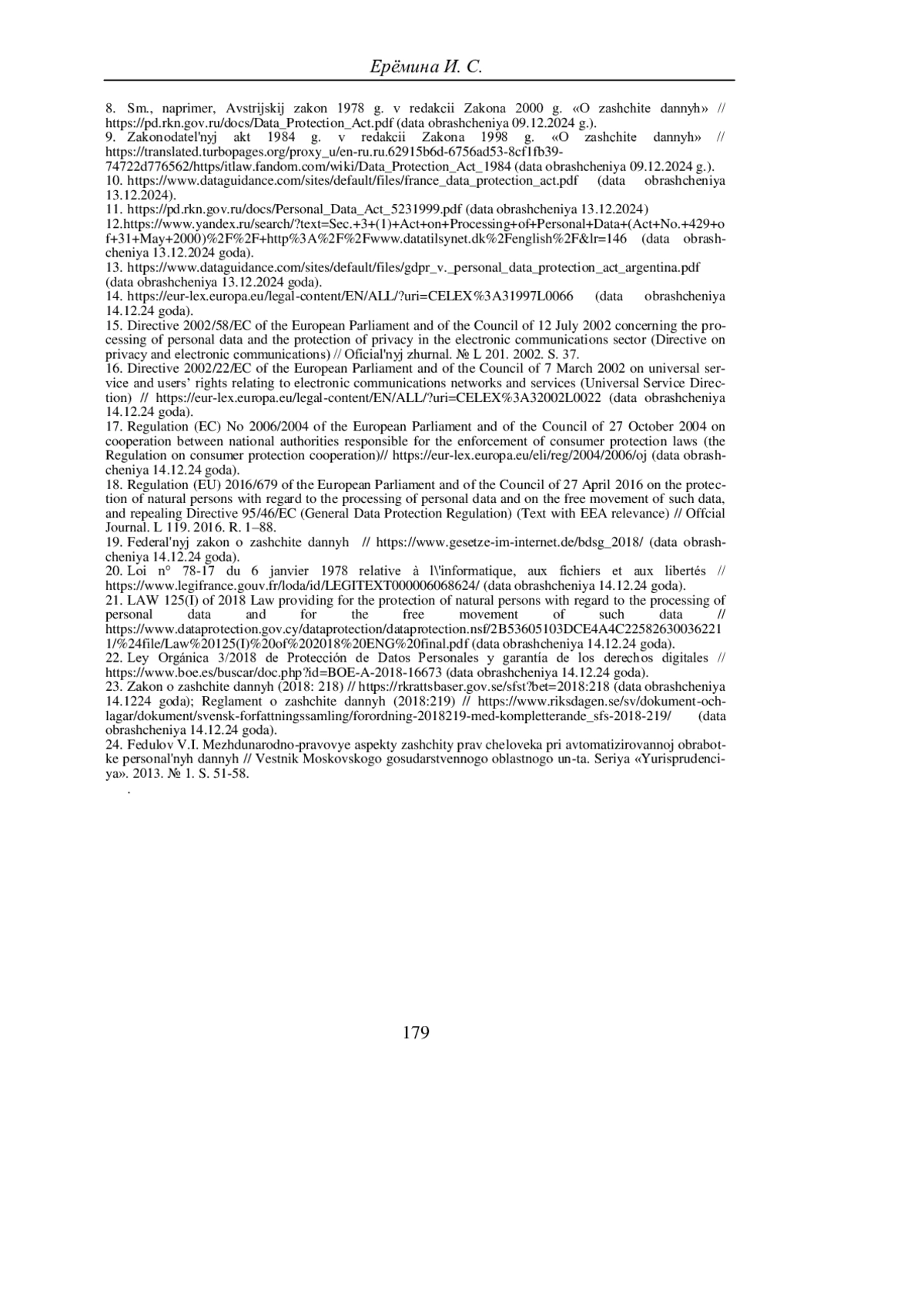 6. Дополнительный протокол к Конвенции о защите частных лиц в отношении автоматизированной обработки данных личного характера. - URL: file:///C:/Users/User/Downloads/dopolnitelnyy_protokol_k_konvencii_ets_181.pdf (дата обращения 04.12.2024).