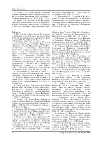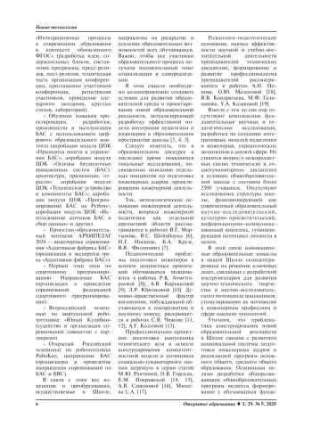 Заключение. Применение модели интеграции педагогики и инженерии способствует формированию мотивирующей образовательной среды для профессионального, личностного роста, развития и самореализации обучающихся и педагогов. Реализация межпредметных связей в процессе разработки интегративных программ обучения, включающих новейшие технические достижения в диалоге с социогуманитарными знаниями актуальна не только для школы, но и для вузов, СПО, предприятий как фактор преемственности. Модель интеграции педагогики и инженерии целесообразно распространить на площадках образовательных организаций России.