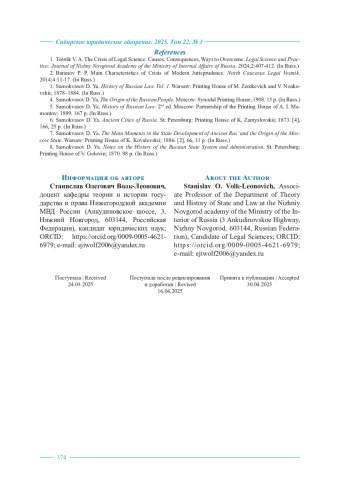 1. Толстик В. А. Кризис юридической науки: причины, следствия, пути преодоления // Юридическая наука и практика: Вестник Нижегородской академии МВД России. 2024. № 2 (66). С. 407-412.