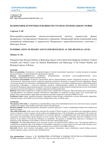 21. Сибукаев Э. Ш. Природные лечебные ресурсы и сопутствующие факторы: гидрологический аспект познания. Курортная медицина. 2024; 1: 5-11.