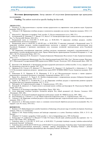 2. Сибукаев Э. Ш. Природные лечебные ресурсы и компоненты ландшафта как система. Курортная медицина. 2024; 4: 25-33.