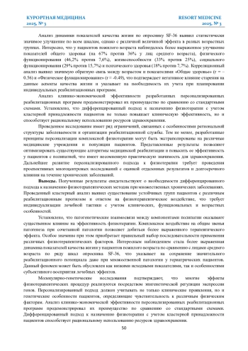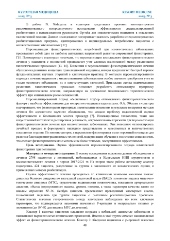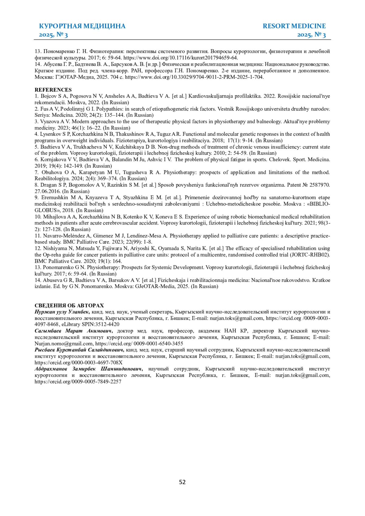 7. Обухова О. А., Карапетян М. У., Тугушева Р. А. Физиотерапия: перспективы применения и ограничения метода. Реабилитология. 2024; 2(4): 369-374. https://www.. DOI: 10.17749/2949-5873/rehabil.2024.35