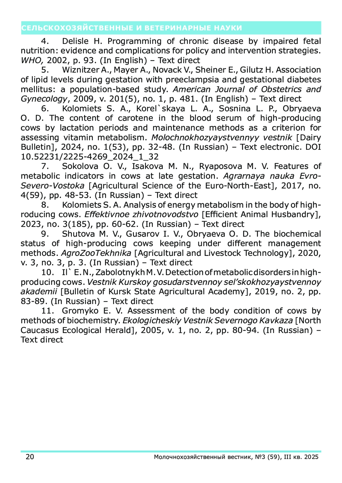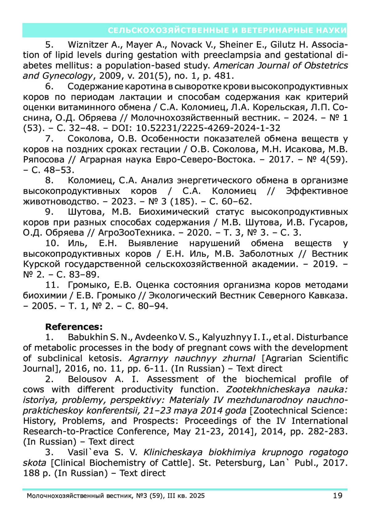 В статье представлены результаты исследований, полученные на базе лаборатории биохимии и физиологии животных Северо-западного научно-исследовательского института молочного и лугопастбищного хозяйства. Проанализированы основные параметры биохимического профиля у коров на поздних сроках гестации при привязном содержании с доением в молокопровод и беспривязном содержании с доением в доильном зале. Исследования были выполнены на одном из крупнейших сельскохозяйственных предприятий Вологодской области. Обнаружены отклонения средних значений показателей уровня глюкозы (42,02±1,55 мг% и 42,7±1,33 мг% при привязном и беспривязном способах содержания соответственно) в сторону снижения показателей. Установлено незначительное снижение уровня аминного азота у 74% коров в поздней стадии стельности. Также наблюдается незначительный недостаток общего белка (7,96±0,26 мг% и 8,06±0,19 мг% при привязном и беспривязном способах содержания соответственно). При анализе показателей минерального обмена отмечается снижение содержания кальция в крови у 96% глубокостельных коров.