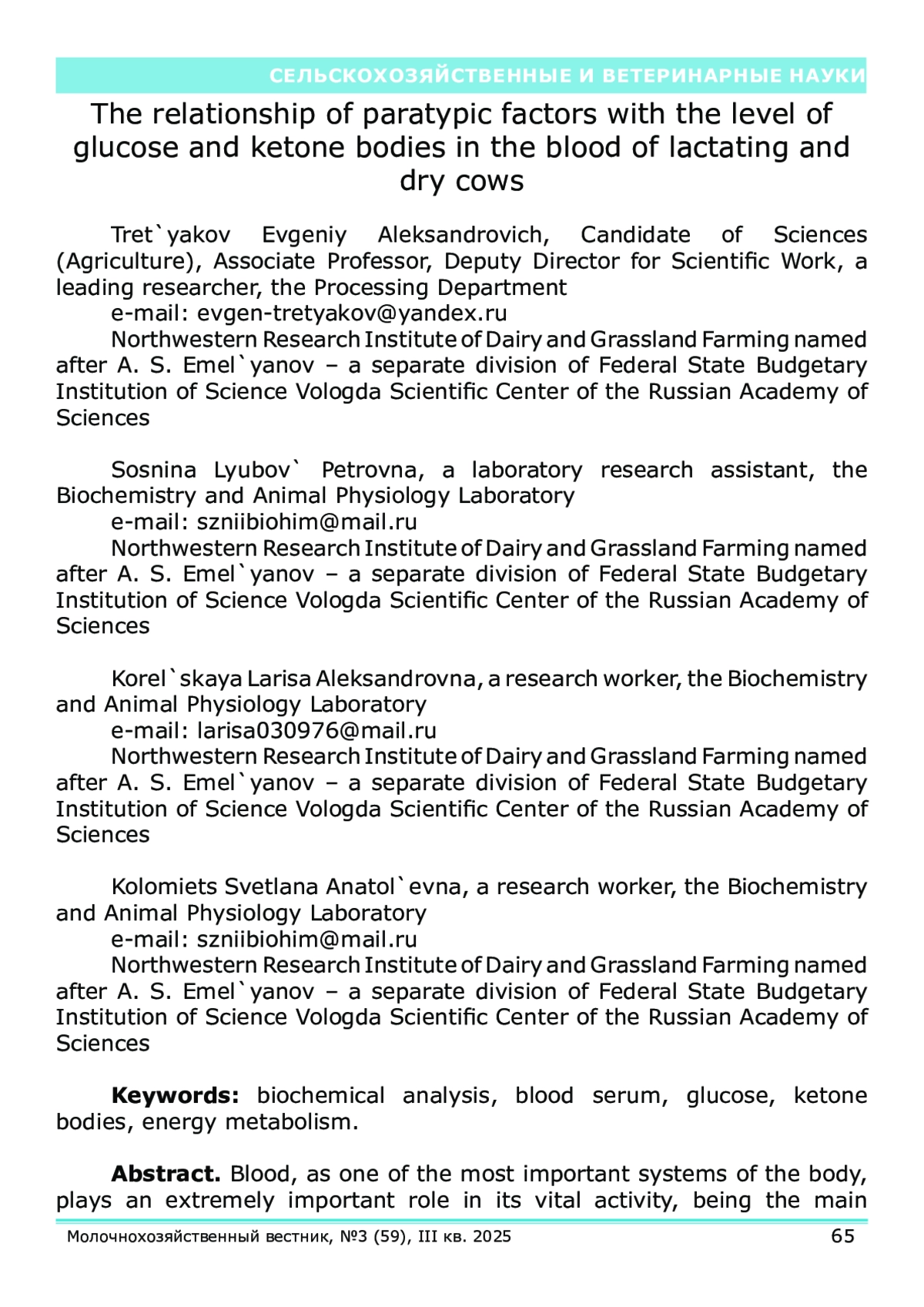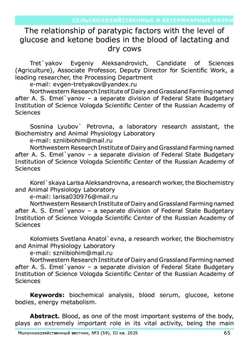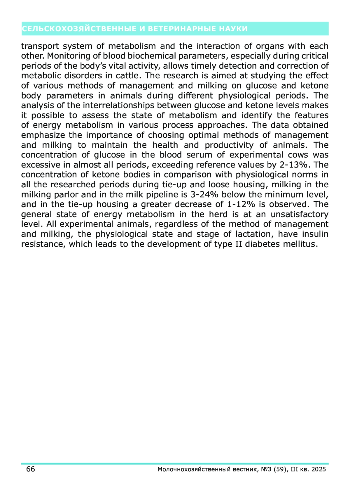 11. Корельская, Л.А. Динамика содержания кетоновых тел в крови высокопродуктивных коров в разные физиологические периоды / Л.А. Корельская, Л.П. Соснина // Эффективное животноводство. - 2023. - № 4 (186). URL: https://cyberleninka.ru/article/n/dinamikasoderzhaniya-ketonovyh-tel-v-krovi-vysokoproduktivnyh-korov-v-raznyefiziologicheskie-periody (дата обращения: 29.07.2025).