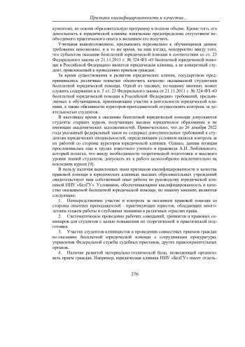 Автором статьи анализируются различные мнения и позиции ученых-юристов относительно компетентности и качества бесплатной юридической помощи, предоставляемой юридическими клиниками, действующими в структуре высших образовательных учреждений. Акцентируется внимание на росте популярности данного института правовой поддержки населения, подтвержденной статистикой числа обращений за бесплатной юридической помощью. На основе собственного опыта работы по руководству юридической клиникой НИУ «БелГУ» автор исследует механизм и средства обеспечения качества оказываемой гражданам правовой помощи. Рассматриваются вопросы отбора и обучения студентов-консультантов, контроля за их работой. Аргументируется вывод о том, что, несмотря на безвозмездный характер, юридическая помощь, оказываемая студентами-клиницистами под руководством опытных преподавателей, обладает признаками квалифицированности и качества, в силу чего может удовлетворить потребности граждан в реализации и защите их прав и законных интересов.