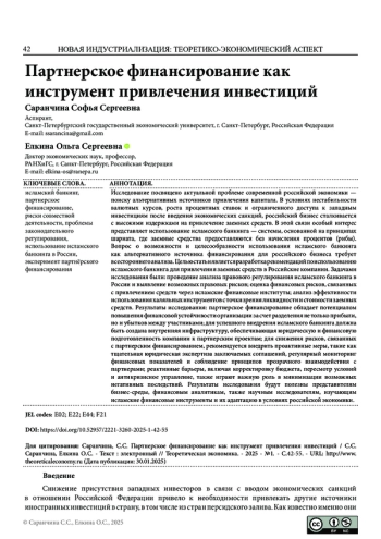7. Иванов, О. М. Регулирование партнерского финансирования: правовой эксперимент и его участники / О. М. Иванов // Вестник Университета имени О.Е. Кутафина (МГЮА). - 2023. - № 1(101). - С. 60-69. // URL: download/elibrary_50422709_28530862.pdf (дата обращения 24.10.2024). DOI: 10.17803/2311-5998.2023.101.1.060-069 EDN: VUHLZG