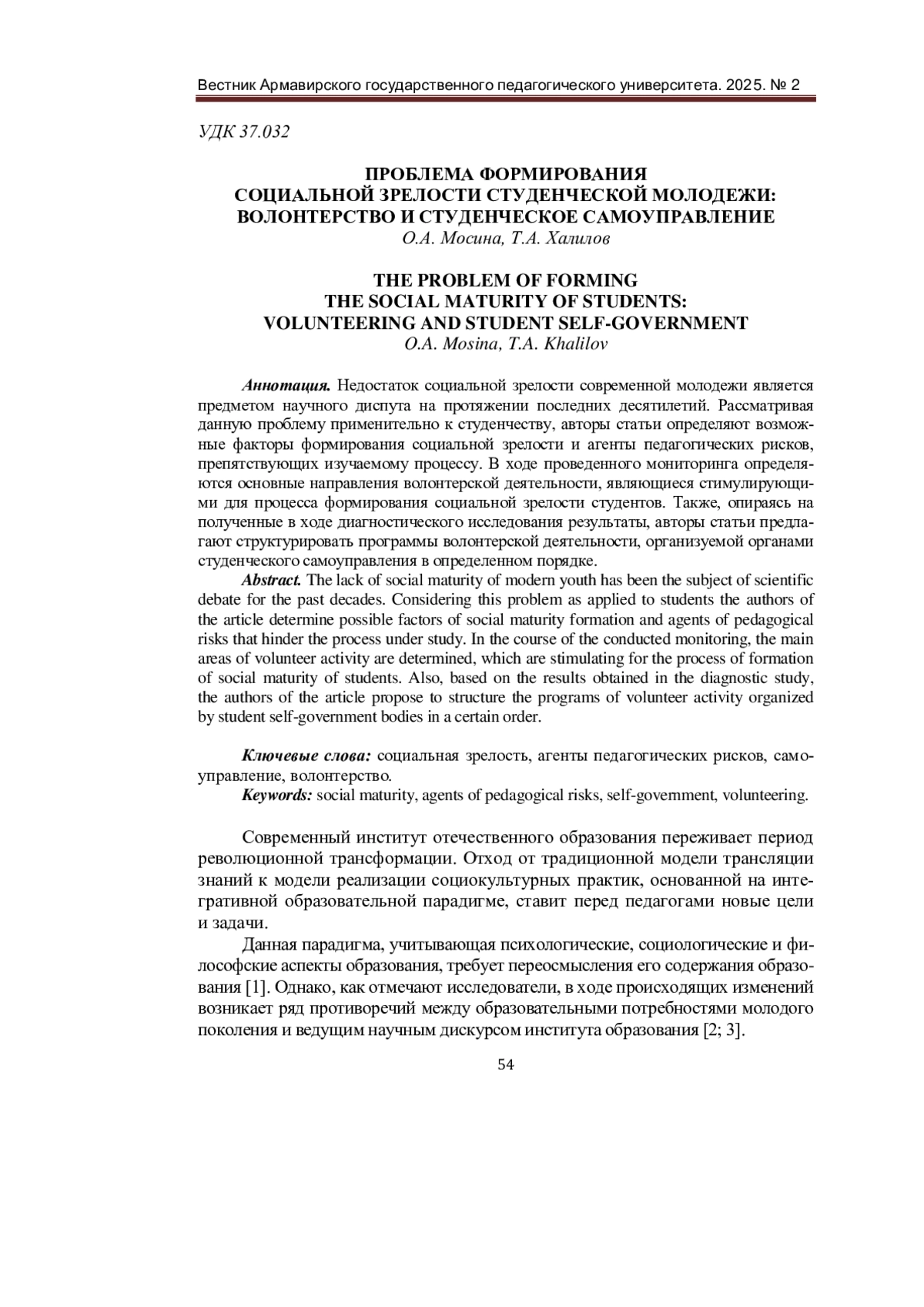 2. Мосина, О. А. Социально-педагогические риски воспитания молодежи в условиях распространения ценностей и манифестов массовой культуры / О. А. Мосина, В. В. Кулишов. - Текст: непосредственный // Вестник Тамбовского университета. Серия: Гуманитарные науки. - 2024. - Том 29. - № 5. - С. 1394-1404. EDN: RVEBWC