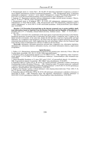 2. Федеральный закон “О персональных данных” от 27.07.2006 N 152-Ф. - URL: Федеральный закон “О персональных данных” от 27.07.2006 N 152-ФЗ (последняя редакция) \ КонсультантПлюс (дата обращения: 12.02.2025).