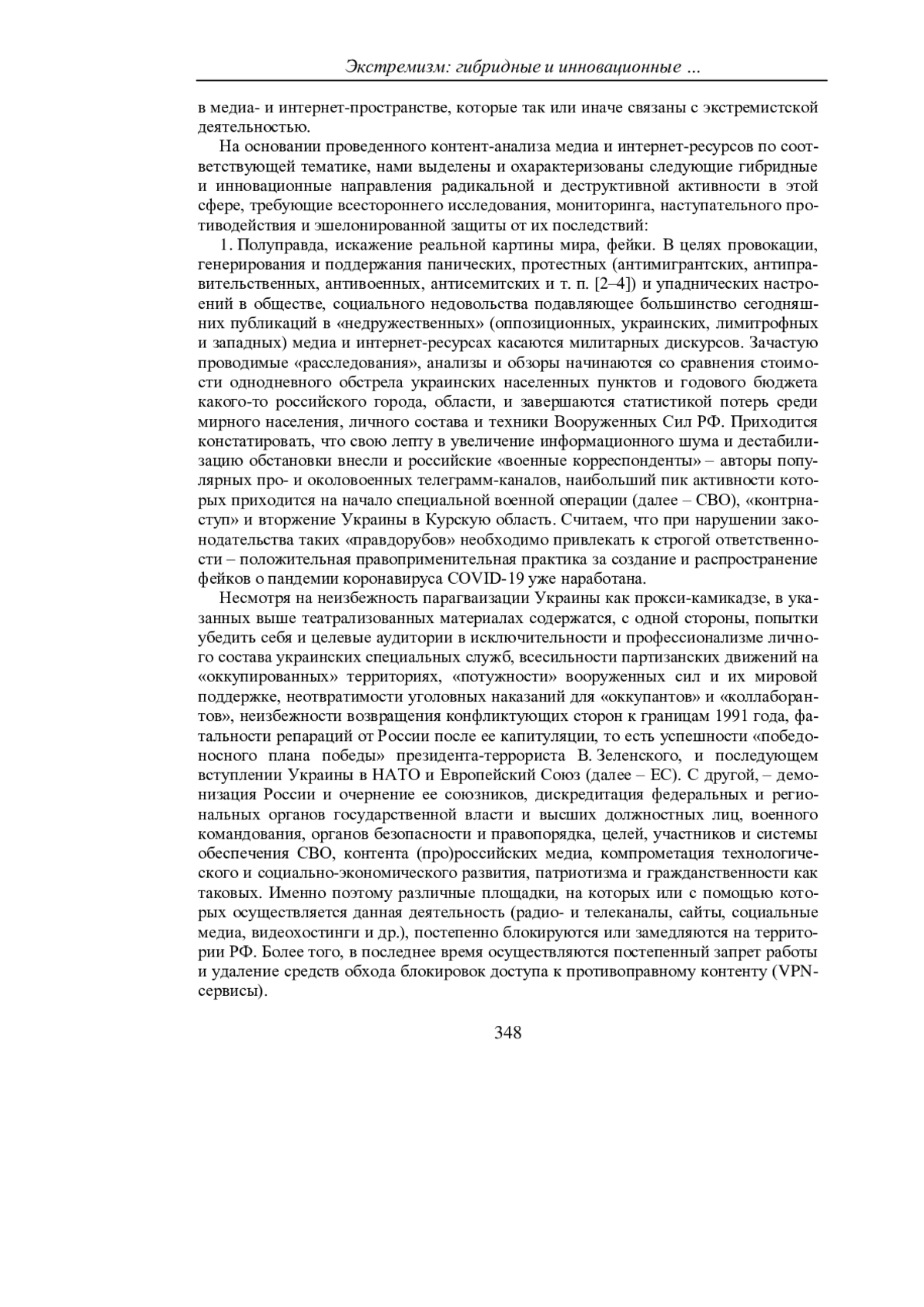 В III тысячелетии прогрессирующей и эволюционирующей угрозой, экзистенциональным вызовом национальной, общественной и информационной безопасности остается противоправная активность экстремистских сообществ, прежде всего в различных медиа и на интернет-ресурсах.