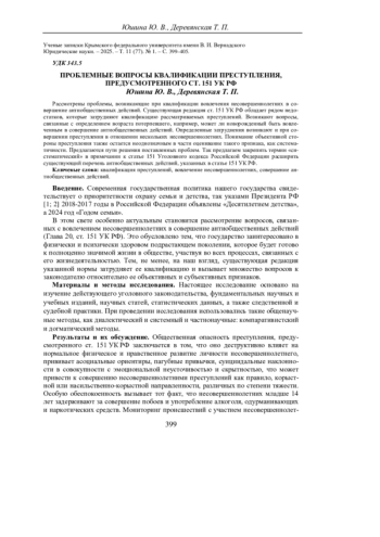 10. Ирицян В.В., Рябченко А.Г. Специфика преступлений против детей: сравнительные аспекты // Ученые записки Крымского федерального университета имени В.И. Вернадского Юридические науки. - 2024. - Т. 10 (76). № 3. - С. 480-487. EDN: YMPZUY