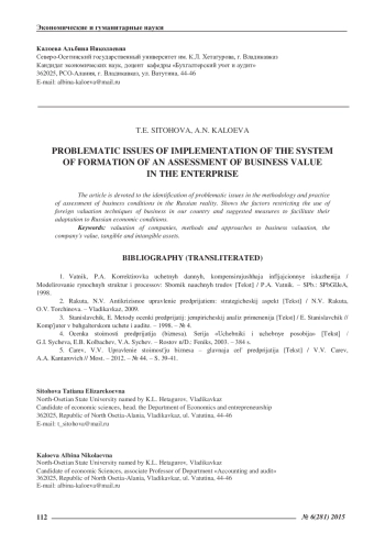 3. Станиславчик, Е. Методы оценки предприятий: эмпирический анализ применения [Текст] / Е. Станиславчик // Компьютер в бухгалтерском учете и аудите. - 1998. - № 4. EDN: WSZIKB