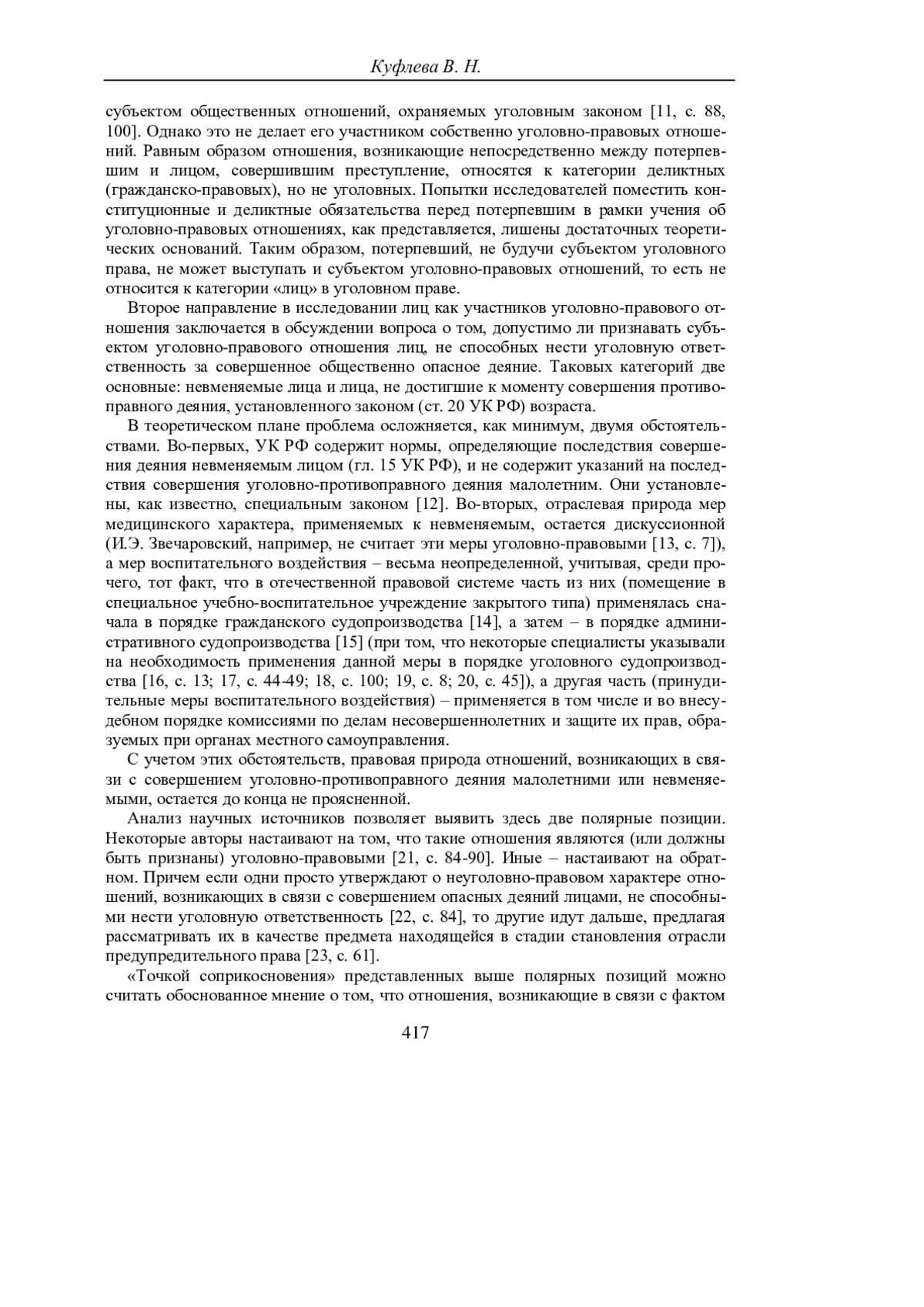 21. Михеев Р.И., Протченко Б.А. Правоотношения, порождаемые деяниями невменяемого // Советское государство и право. - 1984. - № 11. - С. 84-90.