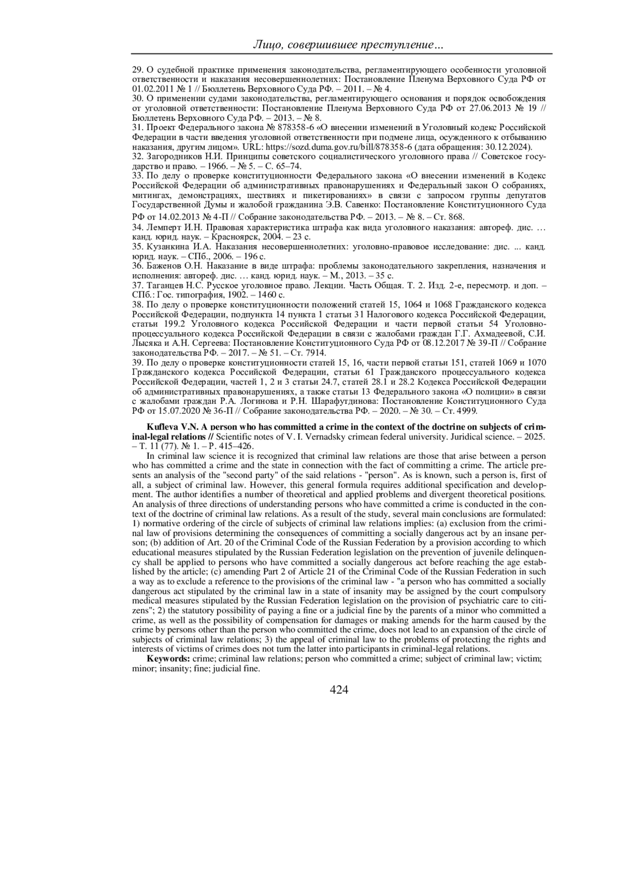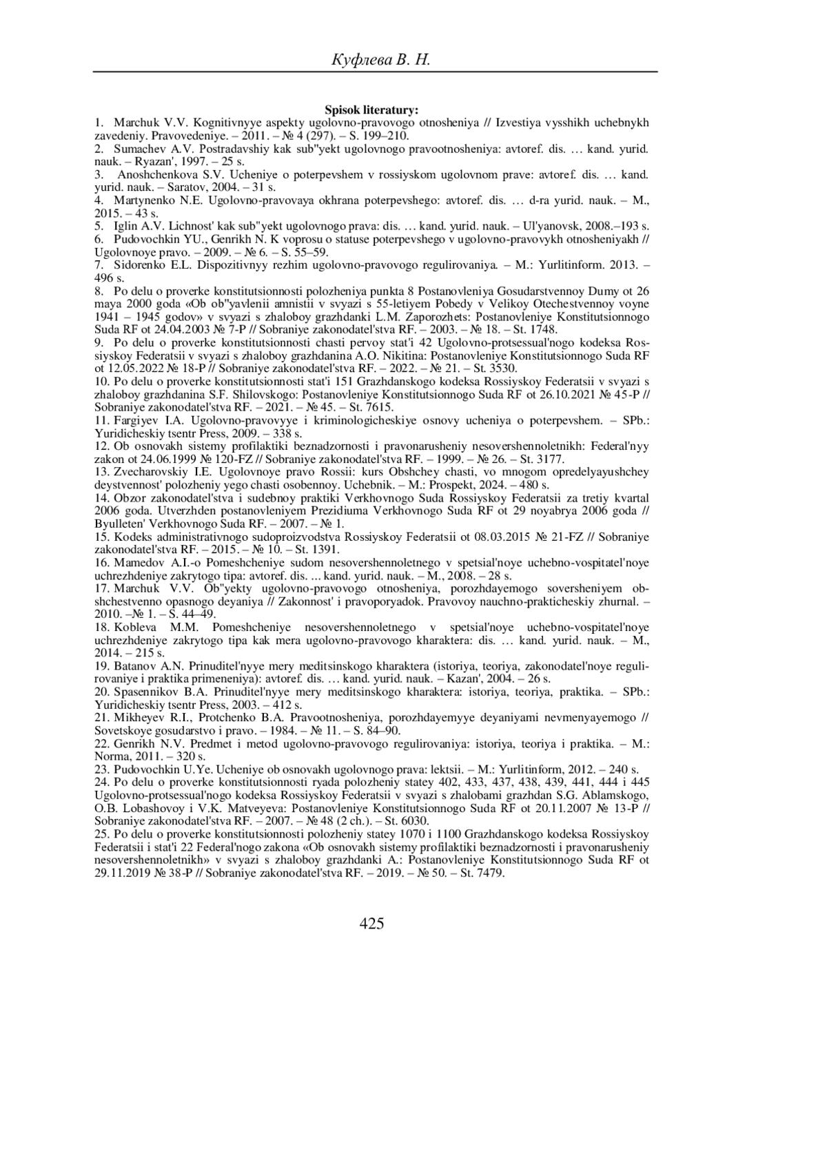 23. Пудовочкин Ю.Е. Учение об основах уголовного права: лекции. - М.: Юрлитинформ, 2012. - 240 с. 24. По делу о проверке конституционности ряда положений статей 402, 433, 437, 438, 439, 441, 444 и 445 Уголовно-процессуального кодекса Российской Федерации в связи с жалобами граждан С.Г. Абламского, О.Б. Лобашовой и В.К. Матвеева: Постановление Конституционного Суда РФ от 20.11.2007 № 13-П // Собрание законодательства РФ. - 2007. - № 48 (2 ч.). - Ст. 6030.