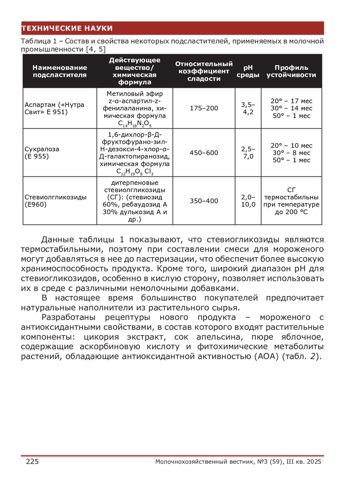 Представлены результаты социологического исследования потребительских предпочтений на рынке сгущенного молока с натуральными сахарозаменителями. На основе результатов опроса ста респондентов выявлены ключевые факторы, влияющие на выбор продукта: тип подсластителя (61 % предпочитают стевию), упаковка (дой-пак – 54 %) и ценовой диапазон (60–65 руб. – 36 %). Установлено, что 89 % потребителей негативно относятся к искусственным добавкам, а 62 % целенаправленно выбирают продукты с натуральными заменителями сахара. Исследование подтвердило высокий спрос на низкокалорийные решения, сохраняющие традиционный вкус. Результаты имеют практическую значимость для производителей молочной продукции, ориентированных на тренды здорового питания.
