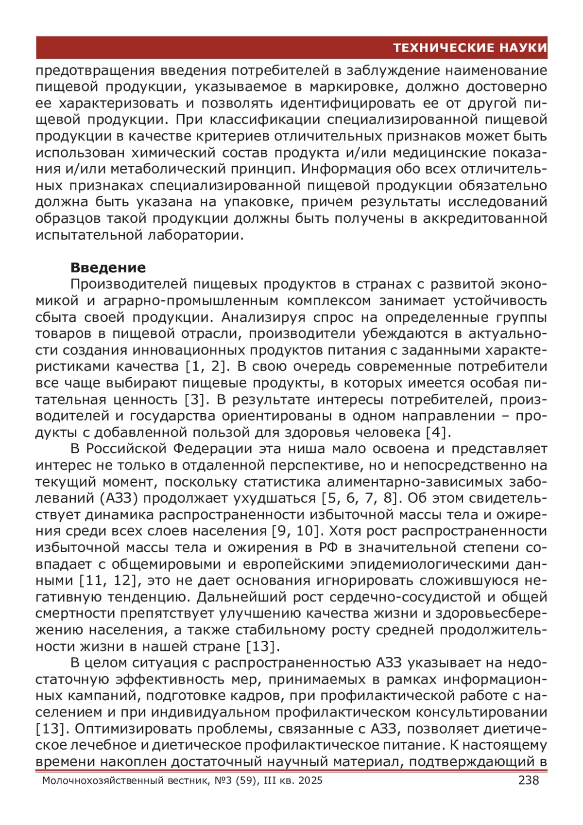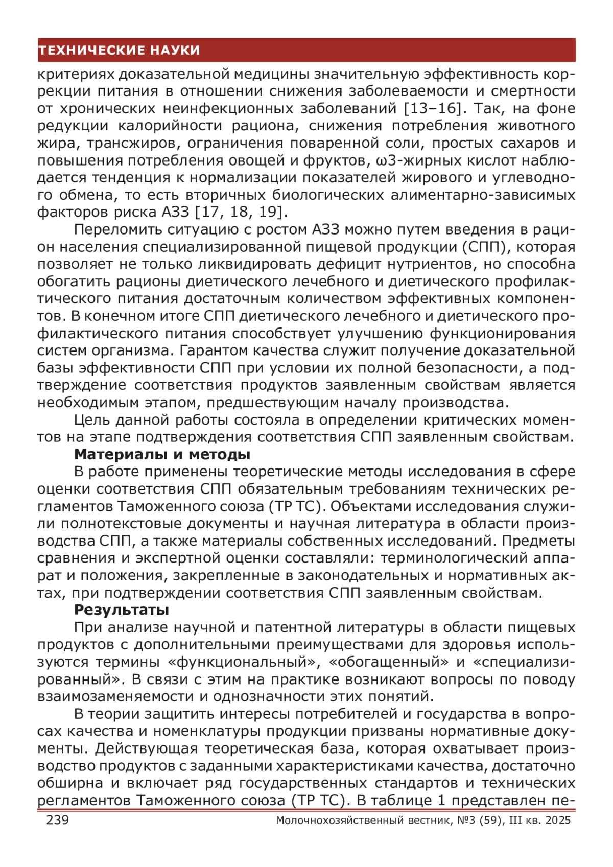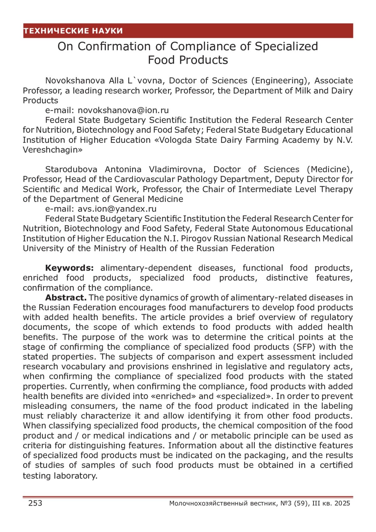 НОВОКШАНОВА А. Л., СТАРОДУБОВА А. В. О ПОДТВЕРЖДЕНИИ СООТВЕТСТВИЯ СПЕЦИАЛИЗИРОВАННОЙ ПИЩЕВОЙ ПРОДУКЦИИ // МОЛОЧНОХОЗЯЙСТВЕННЫЙ ВЕСТНИК. 2025. № 3 (59)